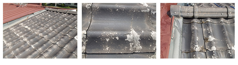 本件建物の屋根材に使用されている「セキスイかわらU」ですが、インターネットで検索すると、数多くのトラブル事例がでてきます。経年劣化が激しく大変割れやすい材料といえます。