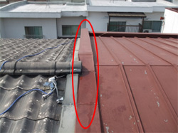 | 2次防水 | 捨て板金・下葺き材(アスファルトルーフィングなど)、外から見えない部分で、本件建物では屋根材をめくっていないため不明。 |