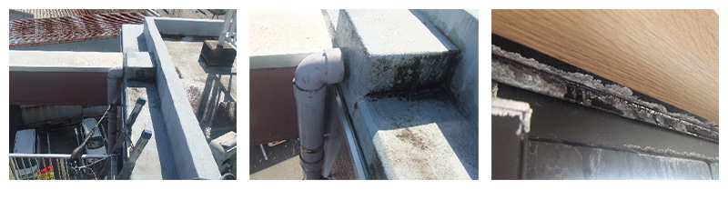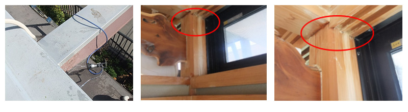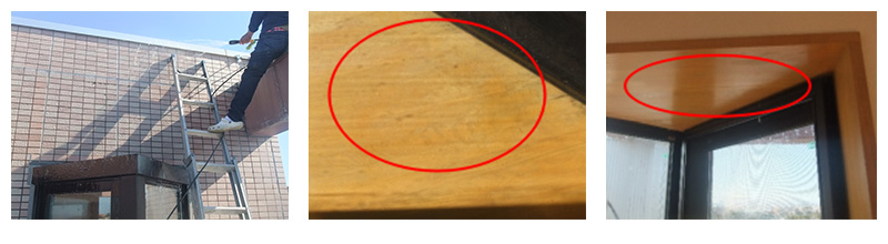 これだけ多くの部位から雨漏りがあるということは、通常の建物の基本的性能を満たしているとは思えません。台風襲来・集中豪雨などの厳しい条件でない通常の雨降りの場合でも、雨水は浸入しているものと思われます。