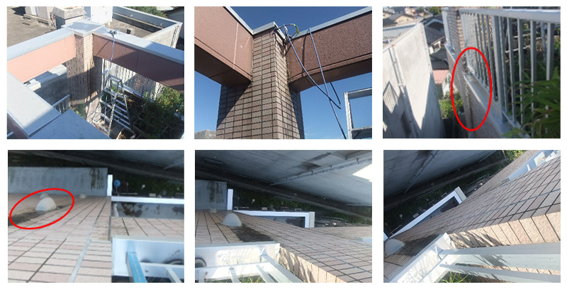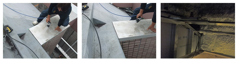 | ⑥4F屋上バルコニー柱(タイル剥落部) 天端笠木ジョイント |