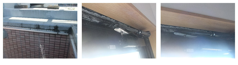 本件建物には多くの部位から雨水が浸入しています。雨漏りはカビの発生になり、カビを食するダニの発生につながり、ヒトの健康を害することになります。雨水が供給され続けるということは、結露の原因にもなり、やがて木部に対し白蟻発生につながります。
