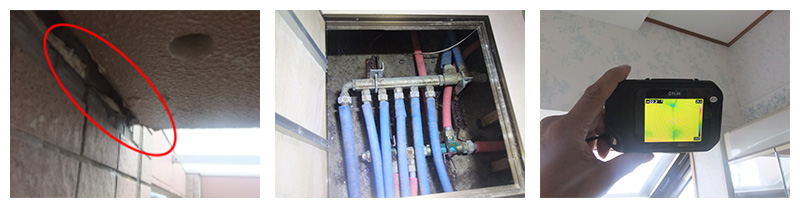 温度差を感知するサーモグラフィーカメラにより水の浸入を示しています。