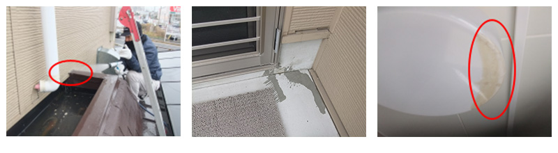 破壊検査はしていませんが、建物内部に水が滞留する可能性があります。