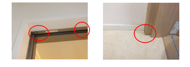 入口枠を通じて垂れてきます。巾木下からも浸出します。