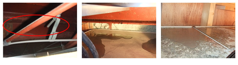 LDK収納の建具枠から浸出し、床は相当濡れました。