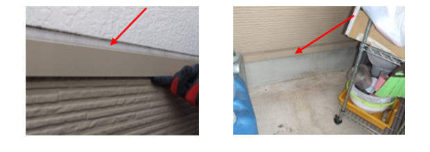 中間水切り:水切りの上部にシーリング施工されており、浸入した水の排水ができない状態です。水が壁内部に滞留することになります。