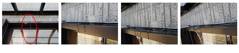 散水試験報告書例8:外壁サイディング施工不良による増設サンルームに大量の雨漏り