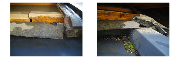 仮説6:屋根南面の切妻、西側ケラバ部の板金と平板瓦の隙間から雨水浸入