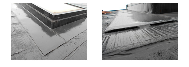 トップライトの施工は、屋根に穴を開け、トップライト部材との取合いを設けるため、雨漏りしやすい部位です。本件建物のトップライト部材はかさ上げされており、雨漏りに対して一項の配慮がされています。周囲の板金の最下部はシーリングで埋められておらず、板金下部に若干浸入した雨水は適正に排出可能です。この部位のシーリングを施工しないということは、雨仕舞いがわかっているはずです。ただし屋根材下部にまで浸入した雨水は排出不能です。