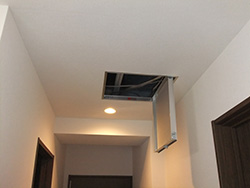 1期工事の段階では、1期工事範囲外の天井石膏ボードやフローリング床を剥がして点検するわけでもなく、直接確認できない部位も多く存在し、技術者が充分に見ることができなかったものと思われます。2期工事の段階で、天井が開口され、フローリング床も剥がして、現実に漏水の被害状況を確認できる状態になりました。現在は、天井点検口が設置されており、実際に漏水の痕跡を確認することができます。