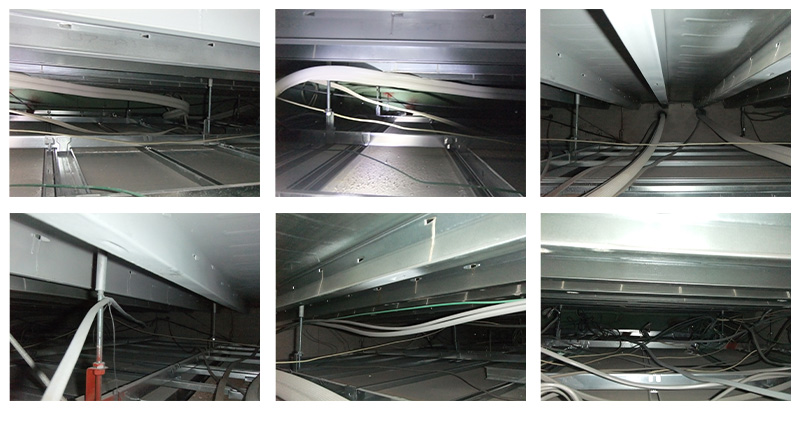 今回の漏水箇所から離れた部位では、軽量鉄骨天井野縁材は、水に濡れていないために、発錆は確認できません。