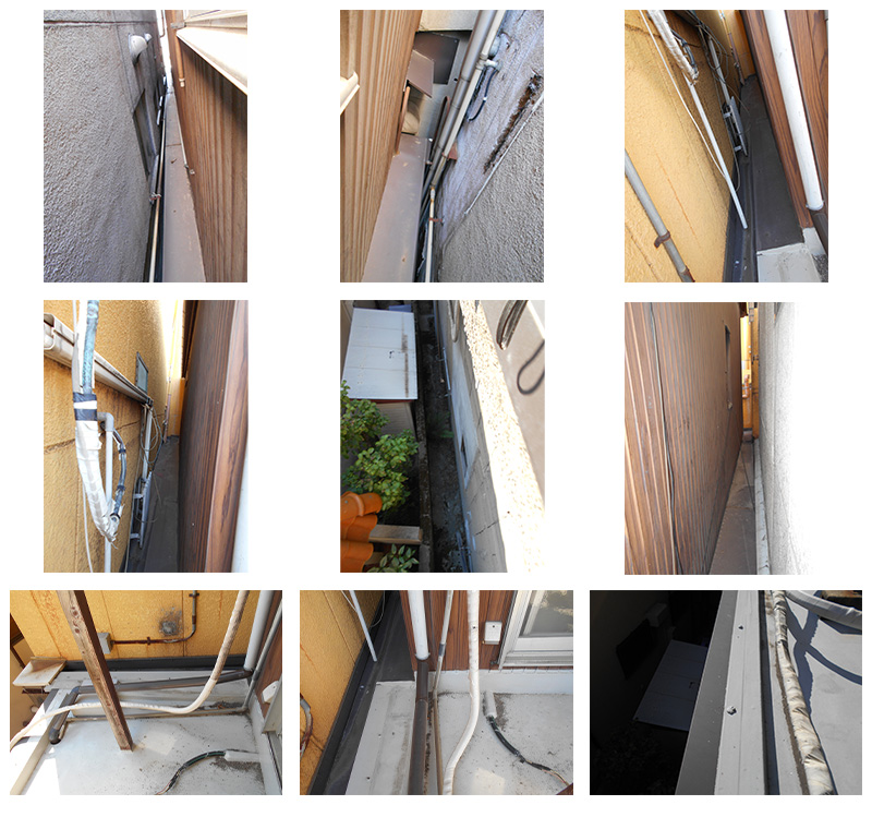 狭小地の中での補修工事はやりにくく、完全な補修工事になりにくい可能性もあります。一方、狭小地のために、風の向き・強さが遮られ、雨漏りしにくくなります。