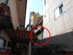 しかし、本件建物のような商店街にある密集状態では、建物が近接・接しており、散水試験として大量の水を撒くスペースがなく、また隣地への立入り、水浸しになるなど、近隣住民の協力を得にくい場合が通常です。したがって、原因究明のための散水試験を実施せずに、経験と勘でいきなり補修工事をやらざるを得ない場合が多く、本件建物の補修工事もそのような状態で補修されました。