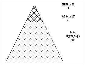 重傷災害が1発生するかげには、29の軽傷災害が発生している。300のヒヤリハット(ヒヤッとした、ハッとしたが事故災害にはならなかった)が発生していることになります。