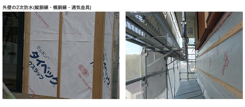 屋根だけではなく、外壁も同様です。外壁通気層の透湿防水シートの外側には、水が流れていることになります。