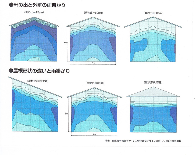 しかし、建物の建築では屋根を先行し、少しでも雨に当たらないようにします。水下側の外壁よりも、水上側である屋根を先行させて雨がかからないようにしています。