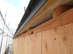 屋根:捨て防水シートの上に屋根下葺き材(アスファルトルーフィングなど)を被せて施工する。