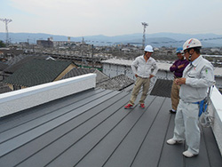それでは、急勾配になればなる程良いかといいますと、そうでもありません。別の問題が生じてきます。6寸勾配以上の急勾配になりますと、施工上危険と判断され、「屋根足場」施工が必要となります。法律で決まっていることです。当然仮設工事費用に反映され、割高になります。また、点検時も簡単には屋根に昇ることができず、遠くから目視するだけになり、点検しにくい状態・メンテナンスしにくい状態になります。