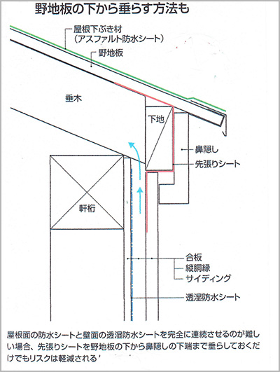 軒の出の少ない建物の場合は、屋根と外壁の縁が切れていないために、どのような対応をするか?
