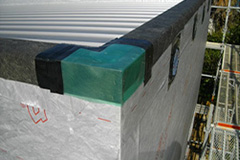 • 三面交点とは、文字通り三つの面の交わる交点部分のところです。1枚の通常の防水シートではうまく施工できません。適正な材料の段取りが必要となります。樹脂製役物か、伸縮性のある防水シートが必要です。住宅部位においては例えば、屋根では、下屋根・棟頂部と…