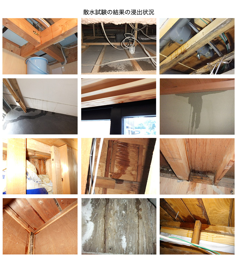 散水試験を実施して、雨水浸入口を特定すると雨漏り現象を再現したことになり、証明できます。しかし、30分散水して雨漏りしなければ雨漏りしないという証明にはなりません。1時間散水すると雨漏りするかもしれません。規準があるわけではありません。ここが悩ましいところです。