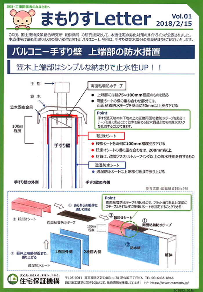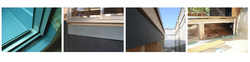 サッシ下枠と窓台まわり空間で発生する結露や経年劣化によるサッシまわりの防水テープの密着不良やサッシ枠の釘打ちフィン取付部からの漏水を事前に想定し、先張り防水シートで縁切りし、躯体への雨水の浸入を防止することが目的です。軒先と壁の取合い部(壁止まり軒部.棟部)、屋根と外壁の取合い部、手すり壁(パラペット)の壁当たり部などの取合いに設置します。